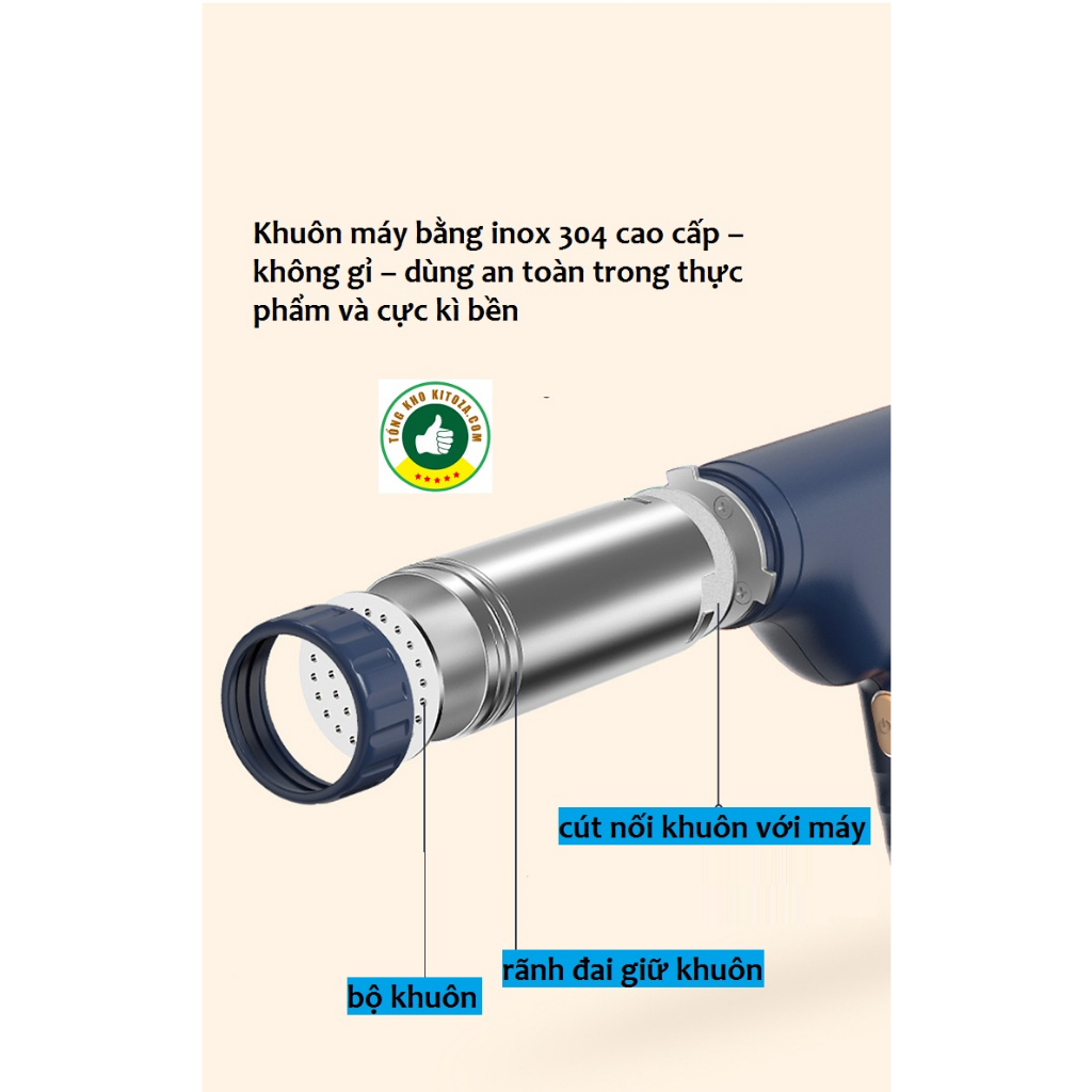 🔹 5 loại khuôn định hình sợi: Tùy chỉnh kích cỡ sợi bún, phở, mì theo sở thích – từ nhỏ mảnh đến to tròn.